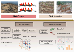 研究发现:采伐剩余物归还法可以显著减轻对化肥的长期依赖,有助于保护细菌网络的关键节点和土壤细菌群落的稳定,而刀耕火种破坏了土壤的物理完整性;采伐剩余物归还可以增强土壤细菌连接程度,更有效地减少可用养分损失;α变形菌可能是区分不同处理土壤细菌群落的关键因子。