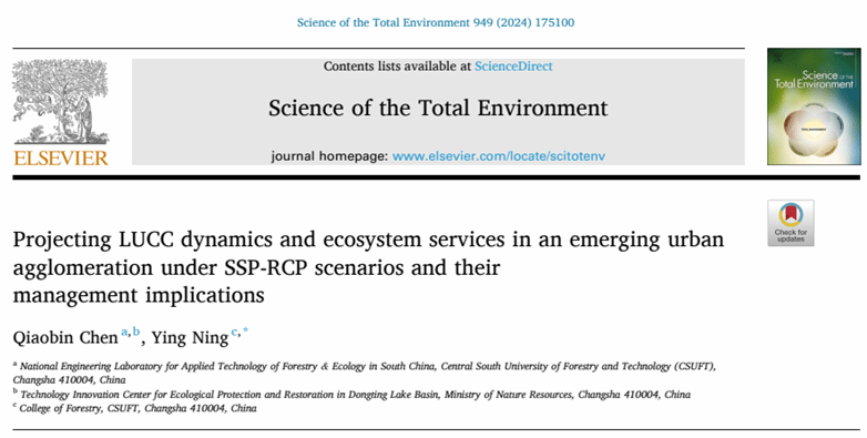 近日,林学院水土保持与荒漠化防治系宁滢博士以长株潭城市群(CZTUA)为例,利用多变量数据模拟和量化方法,对SSP-RCP情景下CZTUA的景观格局进行了模拟,并对未来生态系统服务(ESs)进行了预测。研究成果以“Projecting LUCC dynamics and ecosystem services in an emerging urban agglomeration under SSP-RCP scenarios and their management implications”为题发表在国际环境科学TOP期刊Science of the Total Environment。(https://doi.org/10.1016/j.scitotenv.2024.175100)